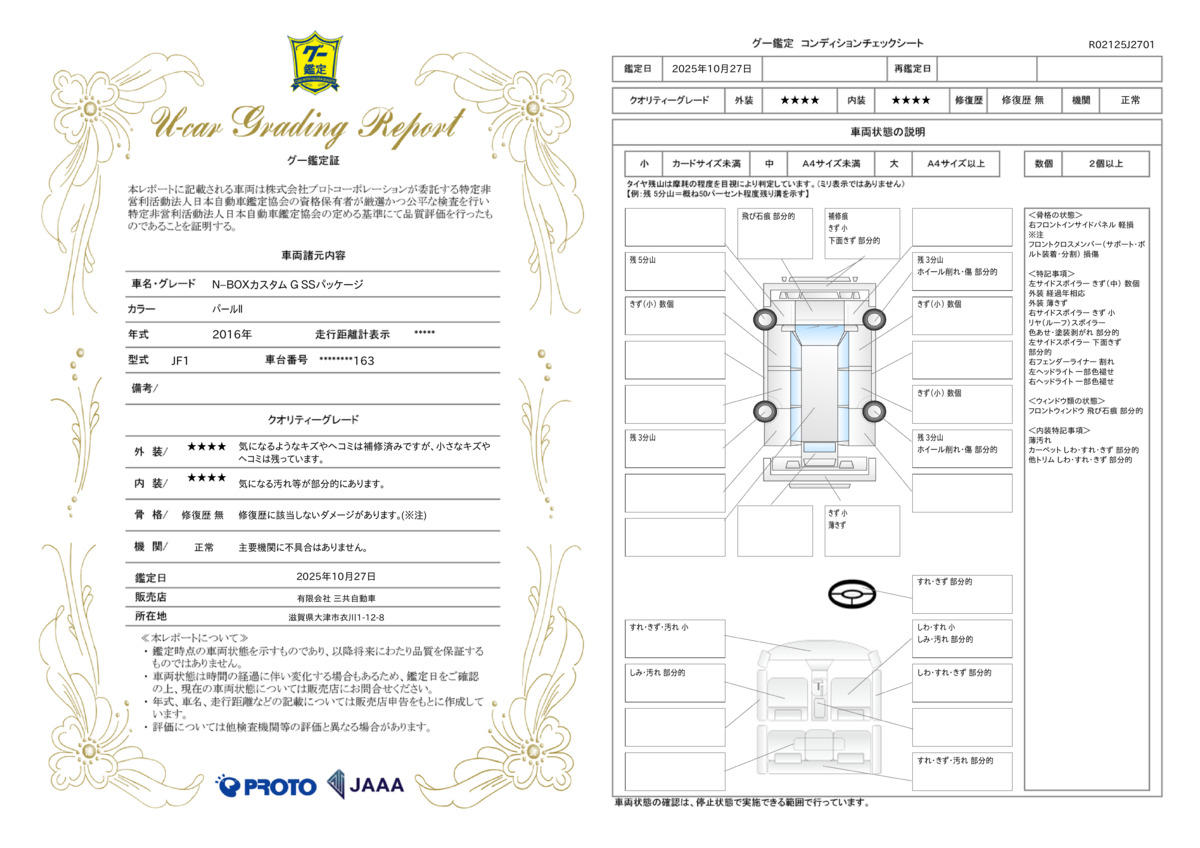 | 車両状態評価書 | ※クリックすると開きます![]() |