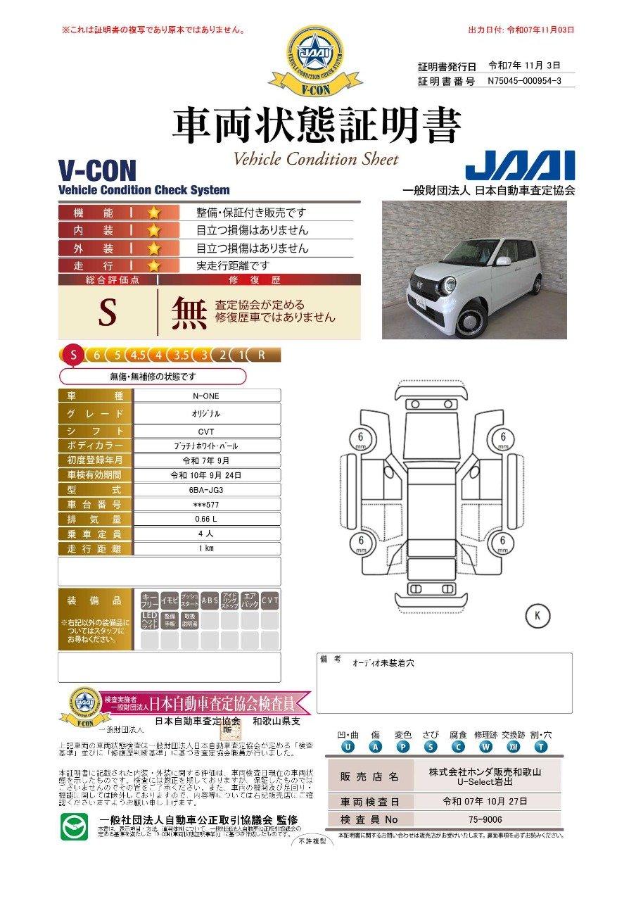 車両保証(N-ONE オリジナル:Honda Cars 紀の川 U-Select 岩出)