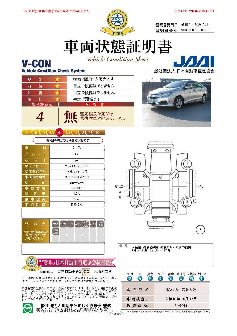 車両保証(グレイス LX:Honda Cars 北大阪 高槻南店)