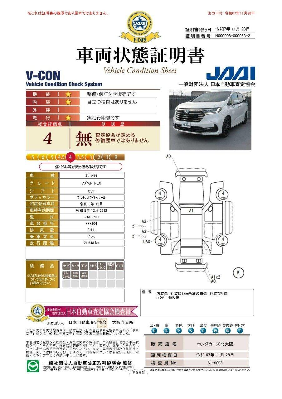車両保証(オデッセイ アブソルート・EX:Honda Cars 北大阪 高槻南店)