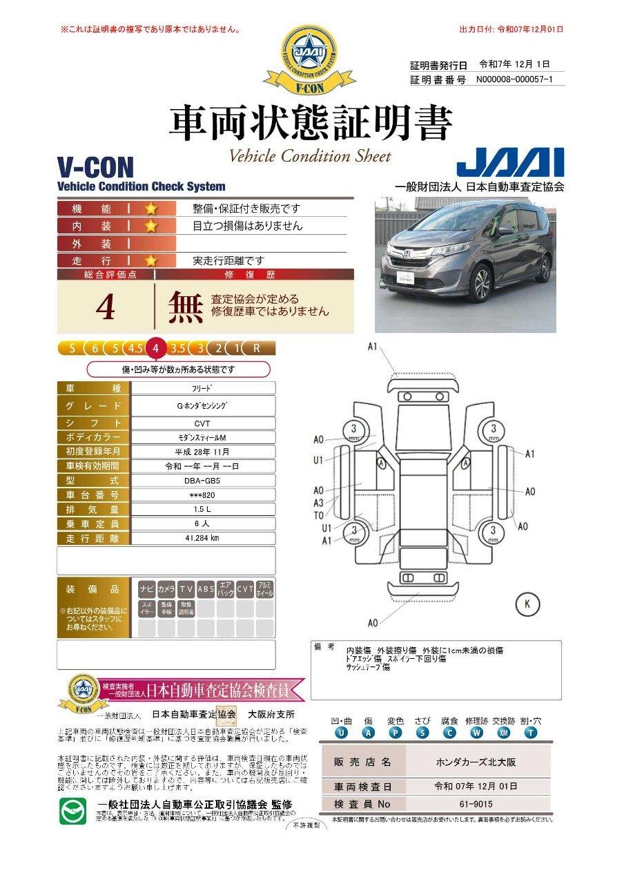 車両保証(フリード G・ホンダセンシング:Honda Cars 北大阪 高槻南店)