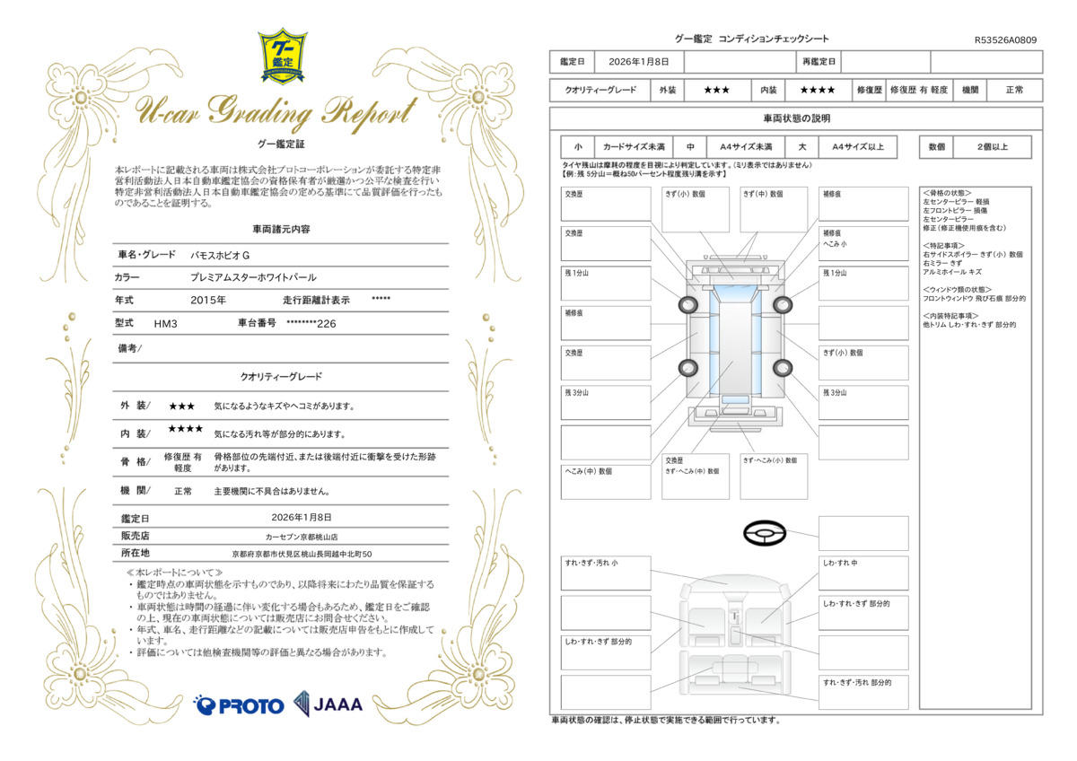 | 車両状態評価書 | ※クリックすると開きます![]() |