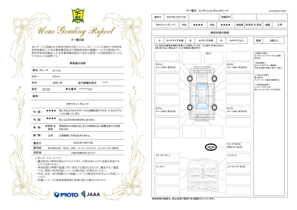 | 車両状態評価書 | ※クリックすると開きます![]() |