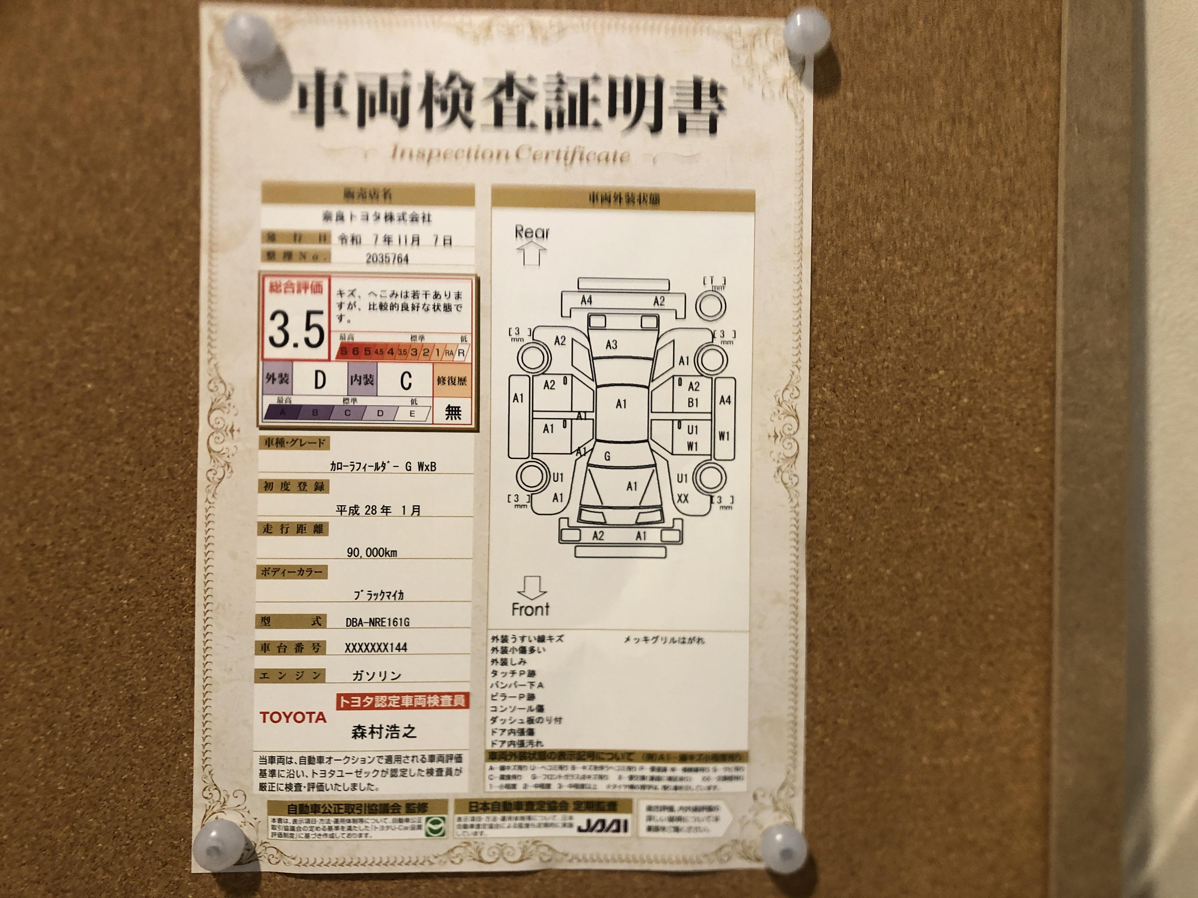 車両状態(カローラフィールダー 1.5G ダブルバイビー)