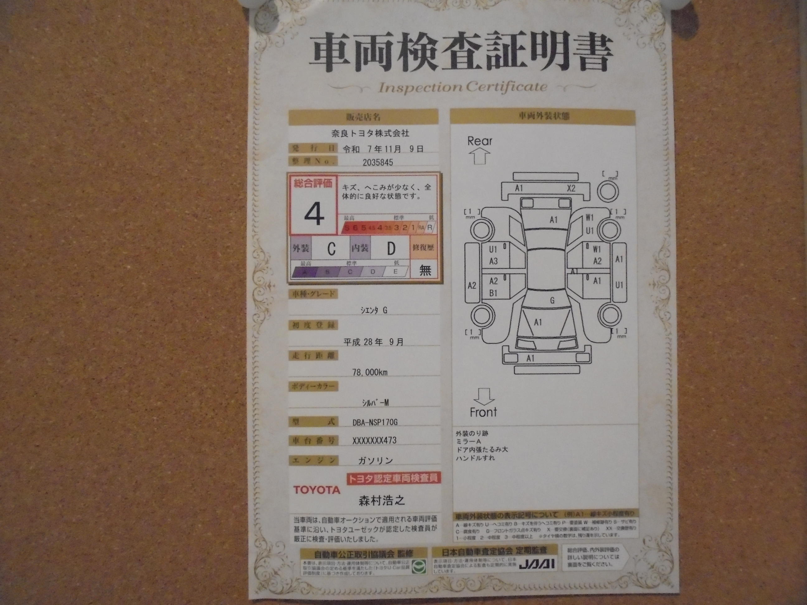 | 車両状態評価書 | ※クリックすると開きます![]() |