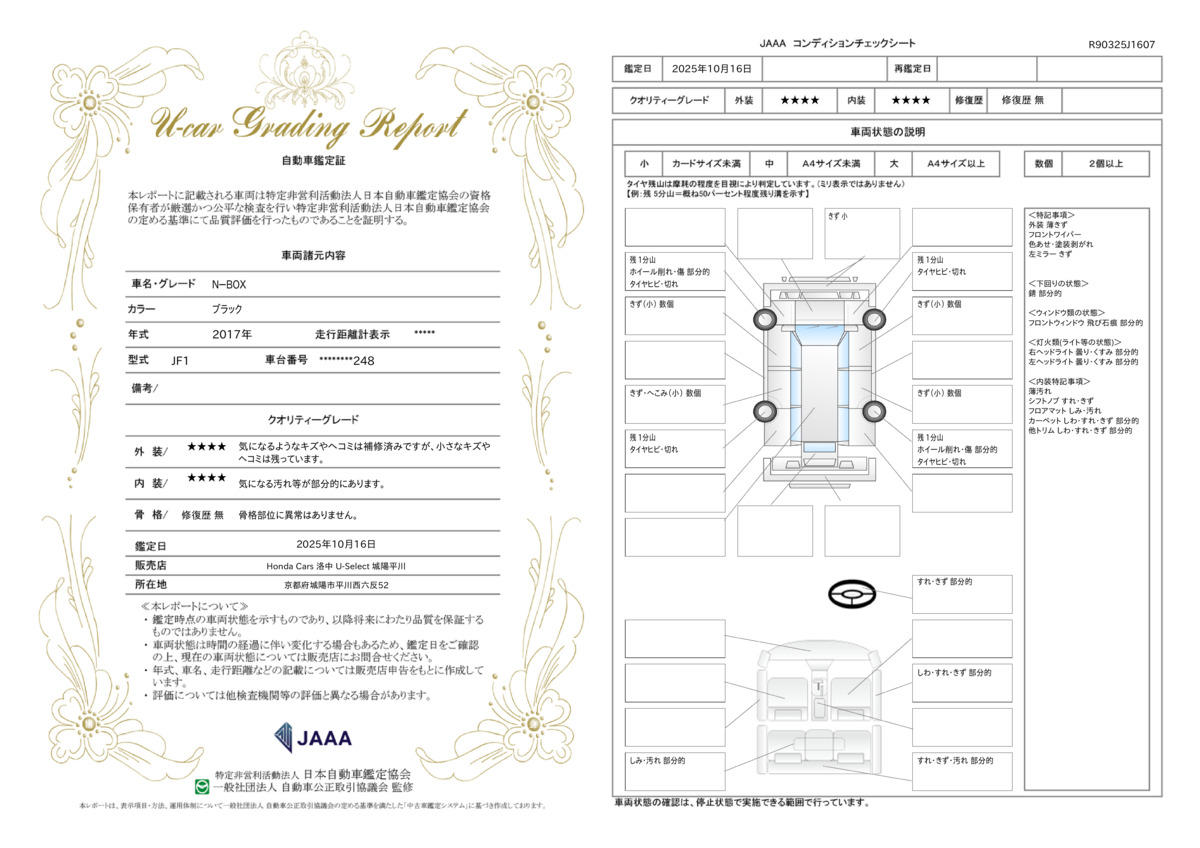 | 車両状態評価書 | ※クリックすると開きます![]() |