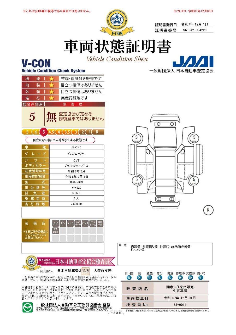車両保証(N-ONE プレミアム ツアラー:ホンダカーズ泉州 U-Select河内長野)