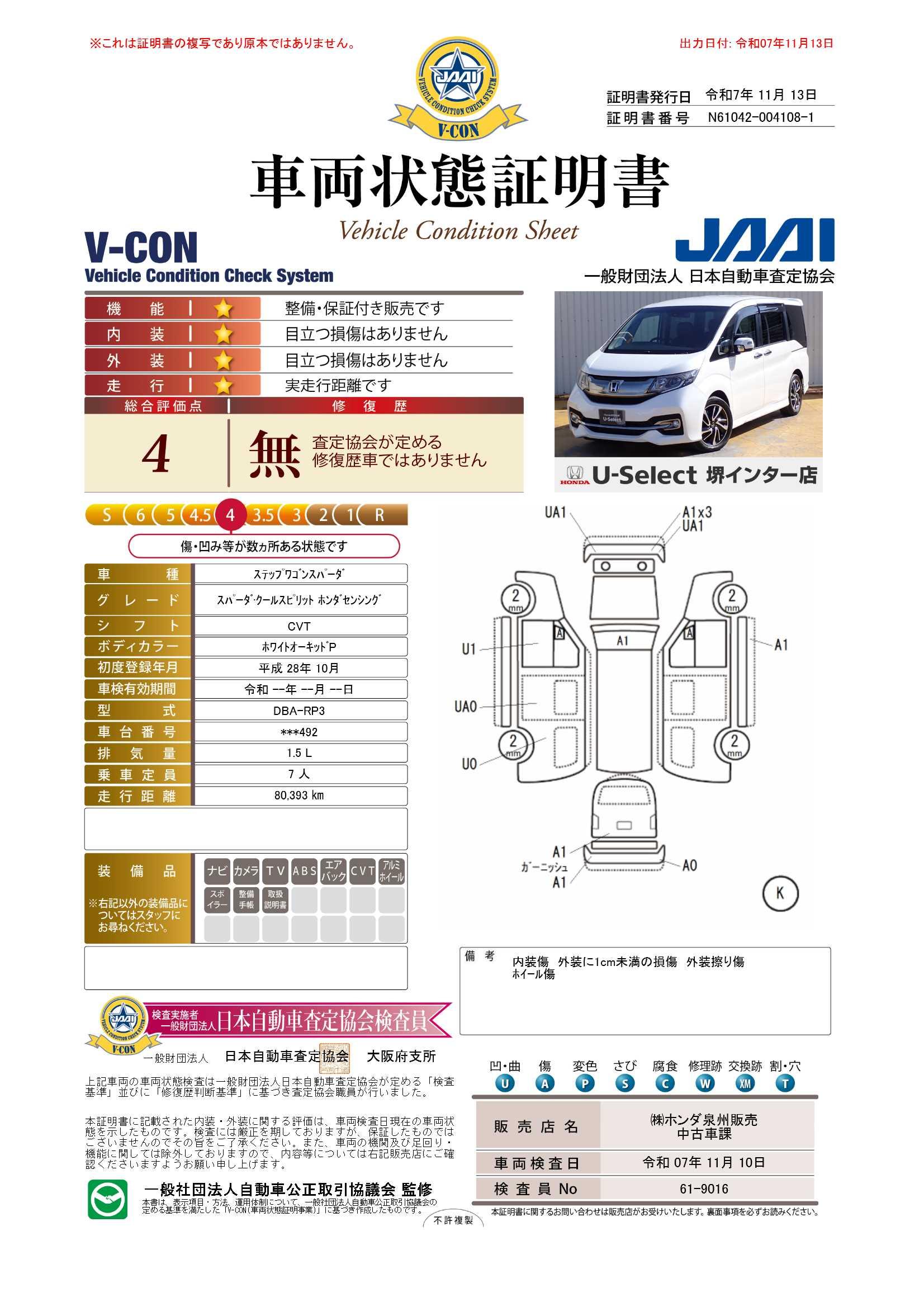 車両保証(ステップワゴンスパーダ スパーダ・クールスピリット ホンダセンシング:ホンダカーズ泉州 U-Select岸和田東)