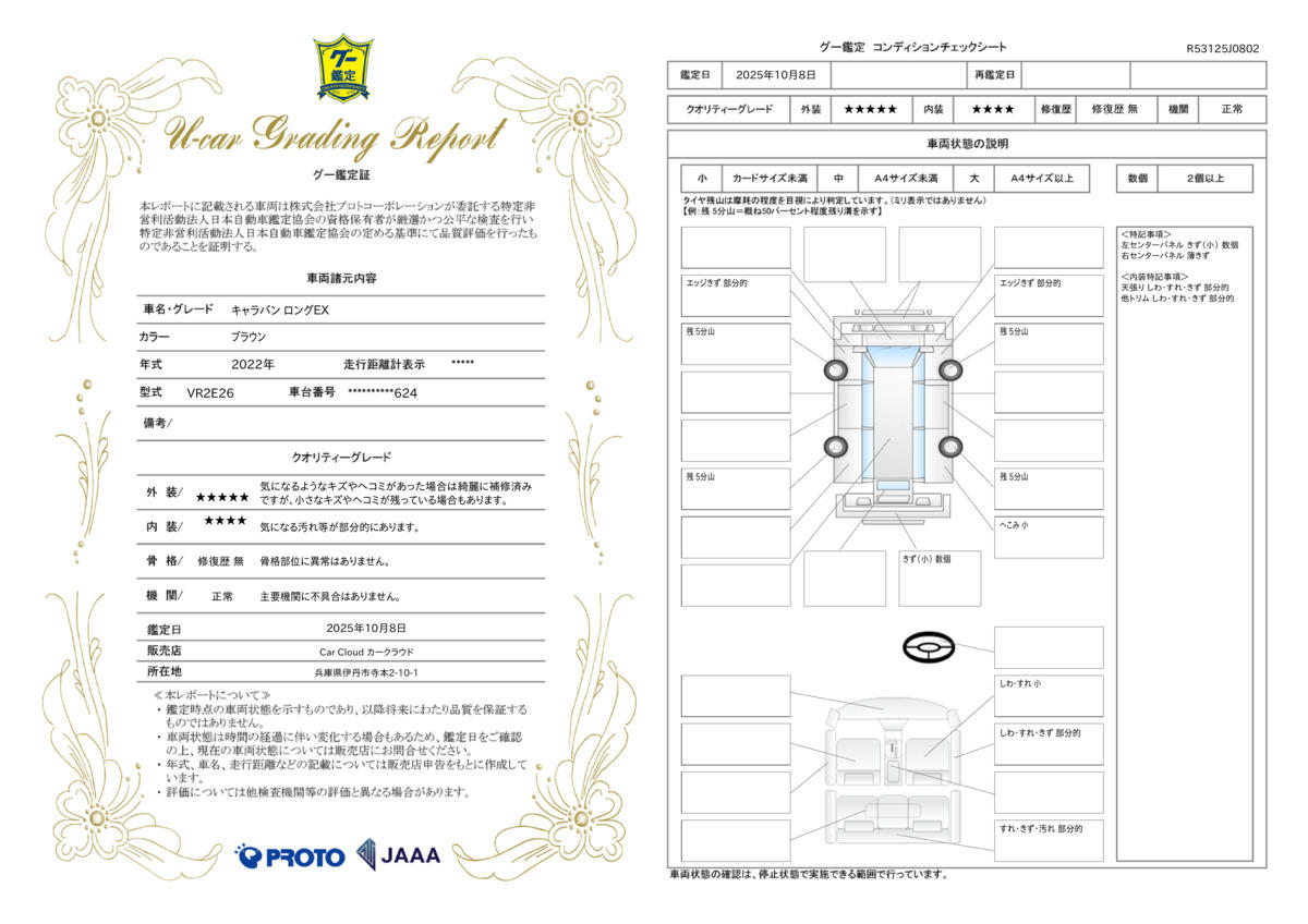 | 車両状態評価書 | ※クリックすると開きます![]() |