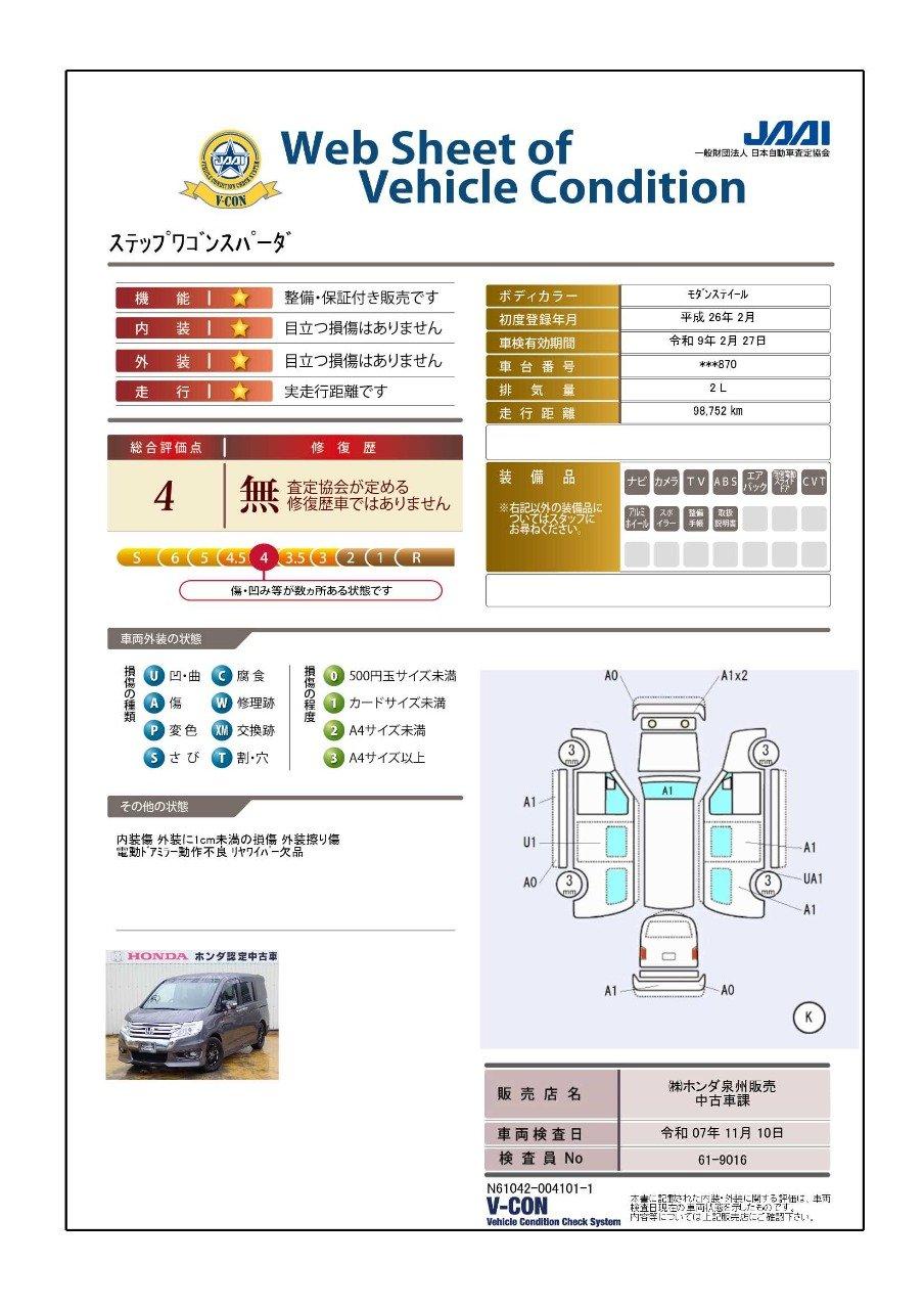 車両状態(ステップワゴンスパーダ Z)