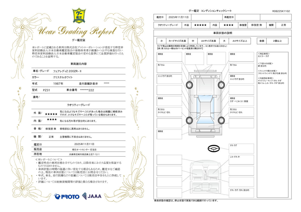 | 車両状態評価書 | ※クリックすると開きます![]() |