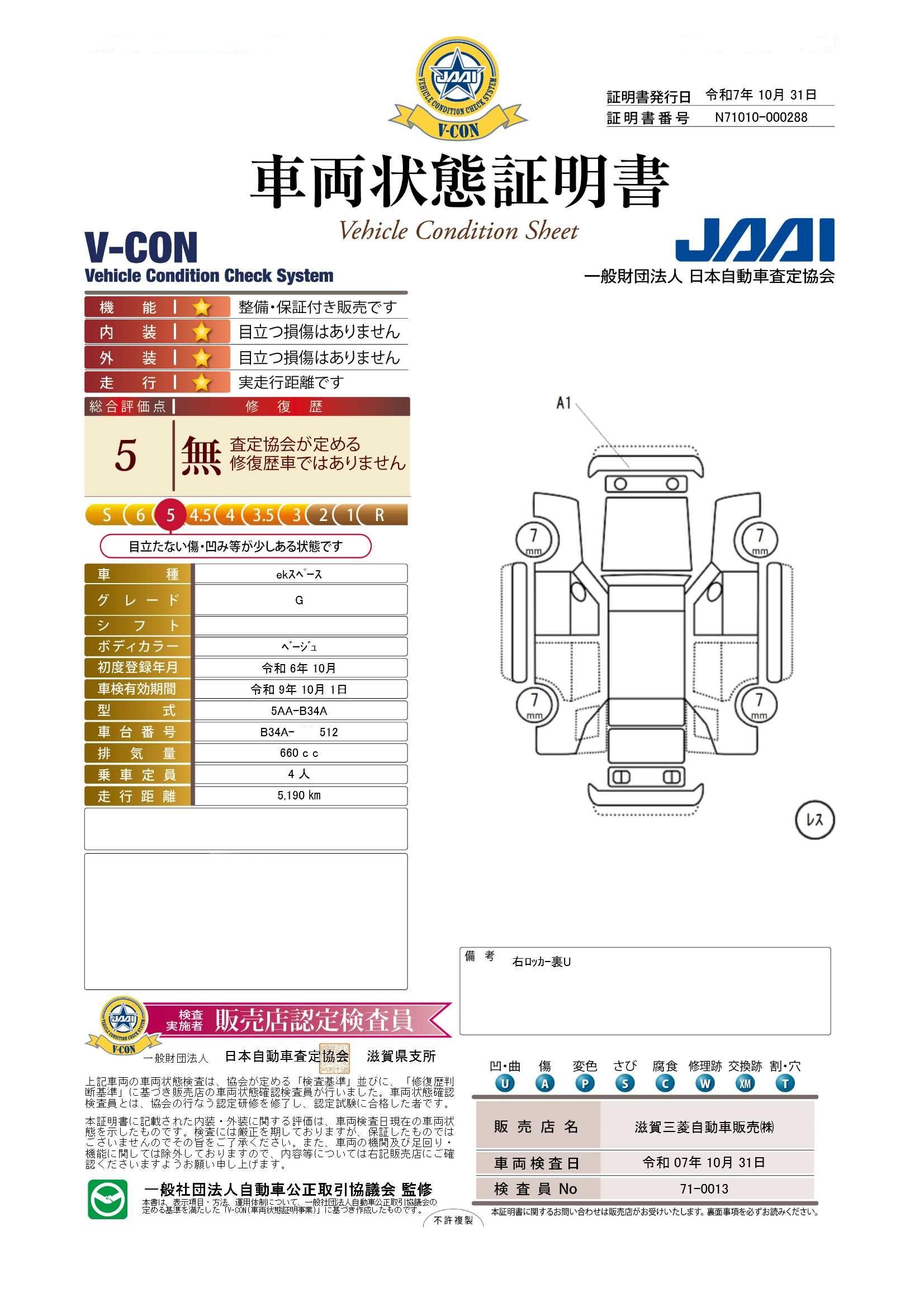 | ボディタイプ | 軽自動車 | 車台番号下3桁 | 512 |