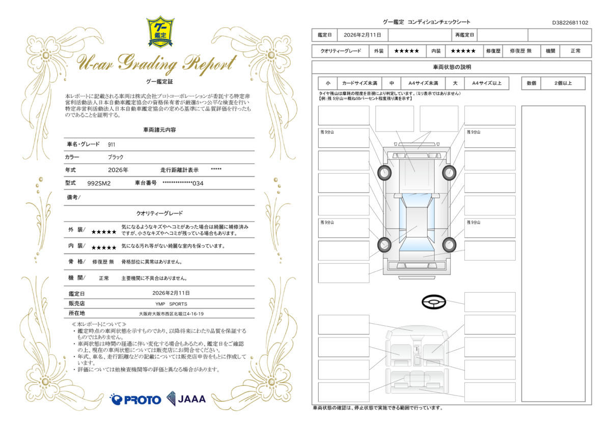 | 車両状態評価書 | ※クリックすると開きます![]() |