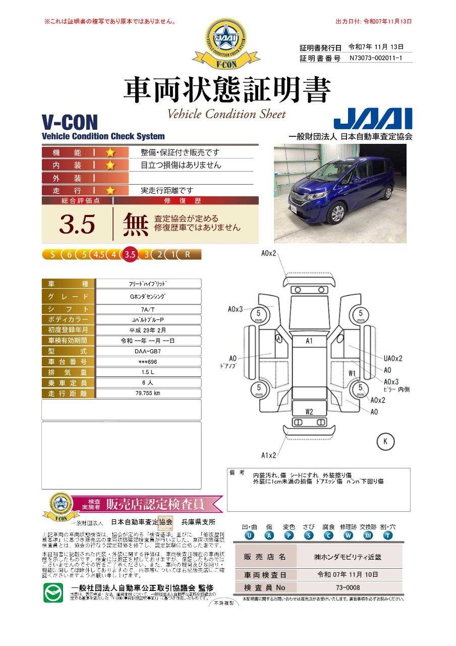 | 車両状態評価書 | ※クリックすると開きます![]() |
