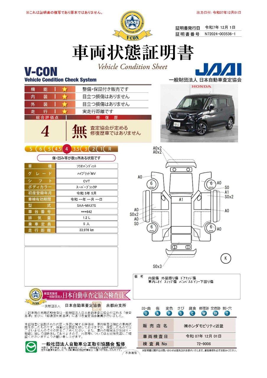 車両保証(ソリオバンディット ハイブリッドMV:ホンダカーズ京都 U-Select久世橋 (株)ホンダモビリティ近畿)