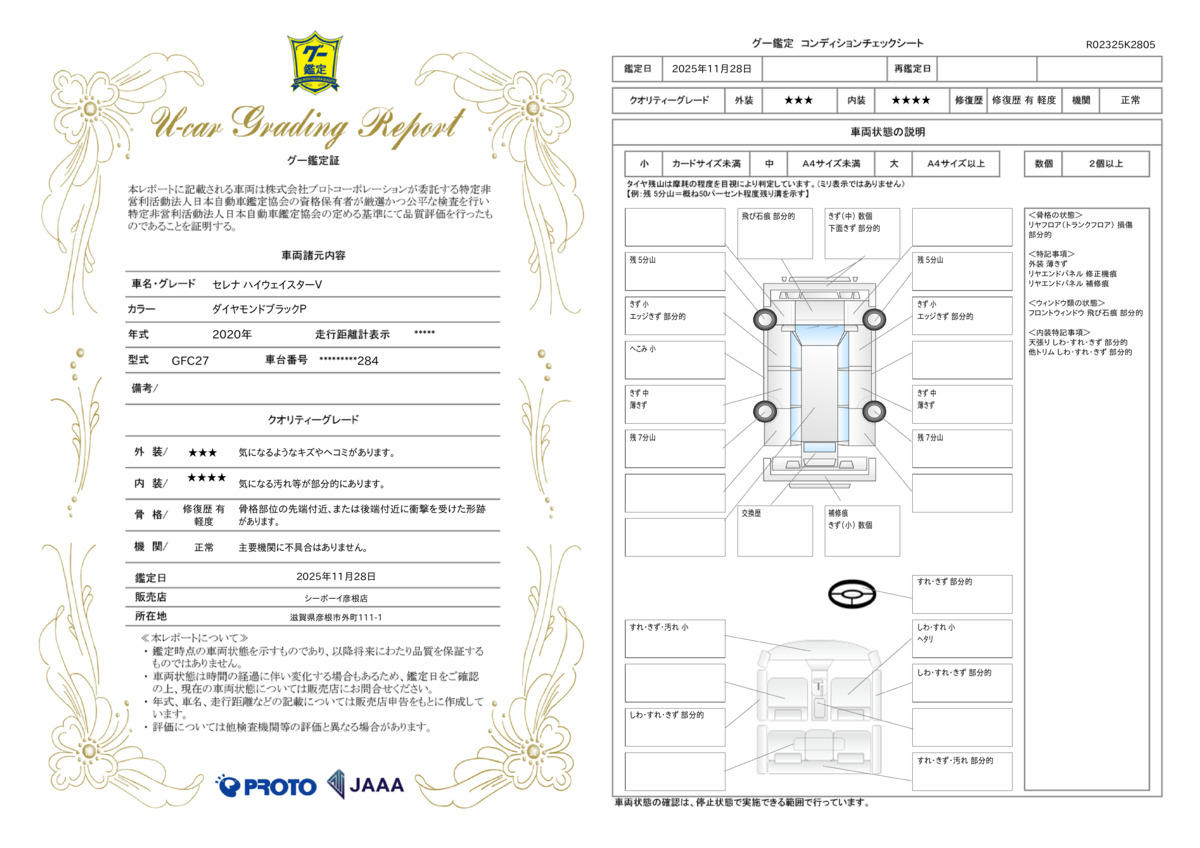 | 車両状態評価書 | ※クリックすると開きます![]() |