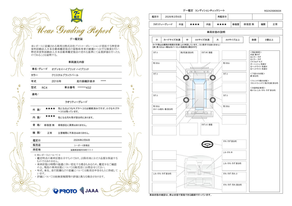 | 車両状態評価書 | ※クリックすると開きます![]() |