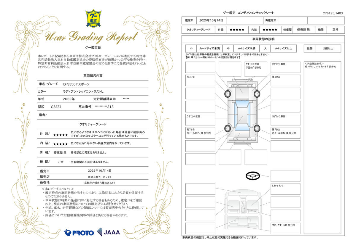 車両保証(IS IS350 Fスポーツ:(株)カーボックス)