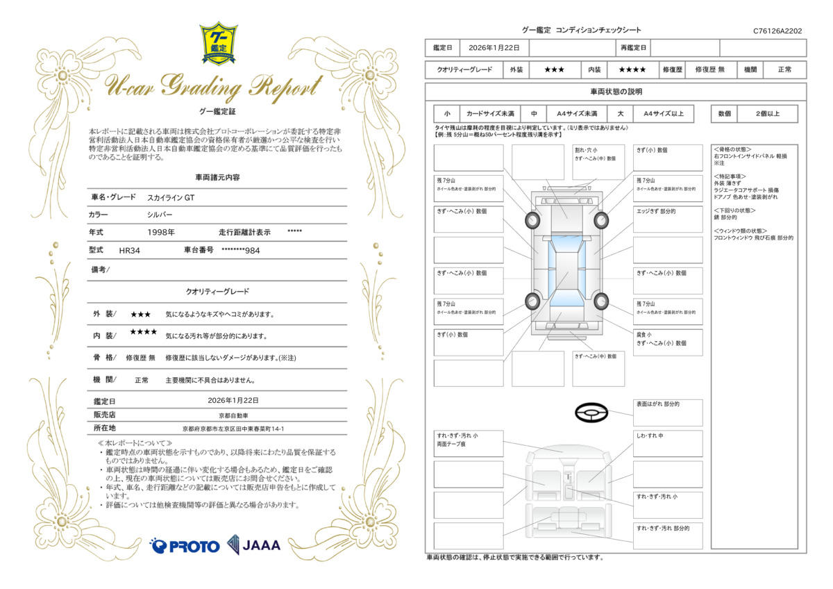 | 車両状態評価書 | ※クリックすると開きます![]() |
