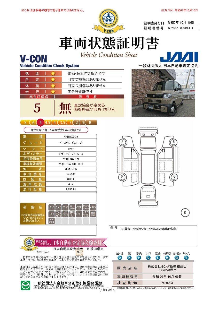 車両保証(N-BOXジョイ ベースグレード:Honda Cars 紀の川 U-Select 和歌山北インター)