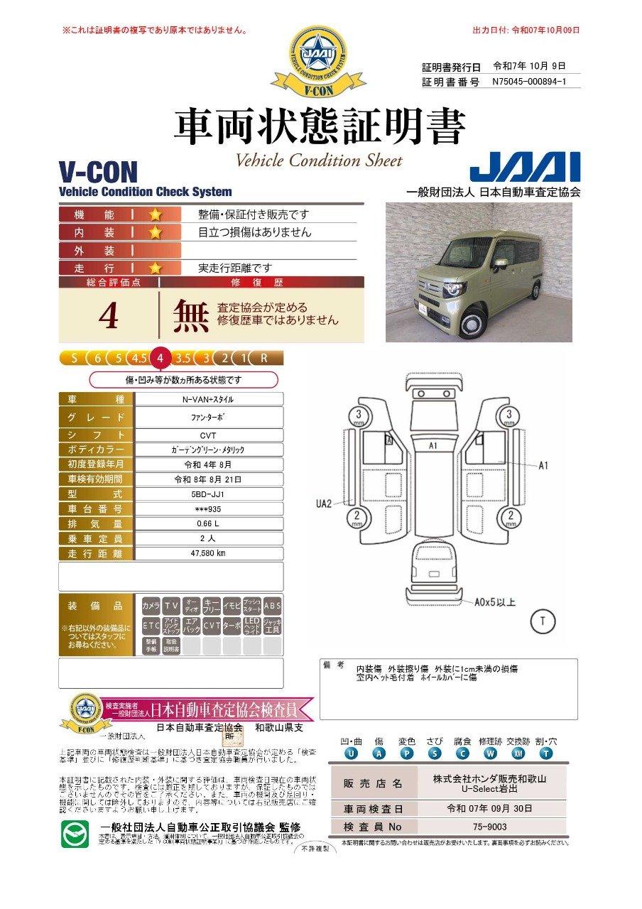 車両保証(N-VAN+スタイル ファン・ターボ:Honda Cars 紀の川 U-Select 和歌山北インター)