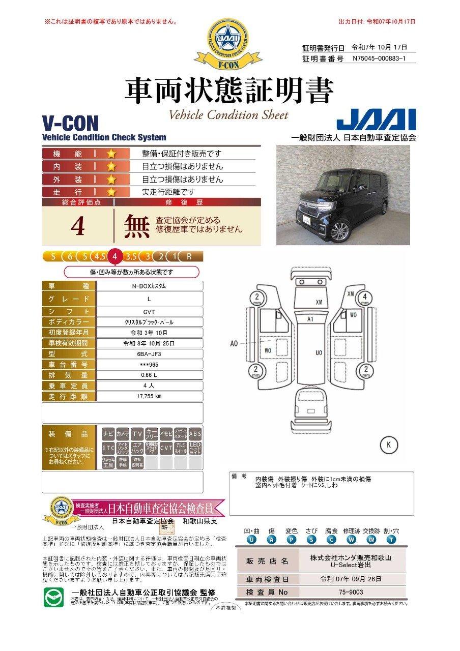 車両保証(N-BOXカスタム L:Honda Cars 紀の川 U-Select 和歌山北インター)