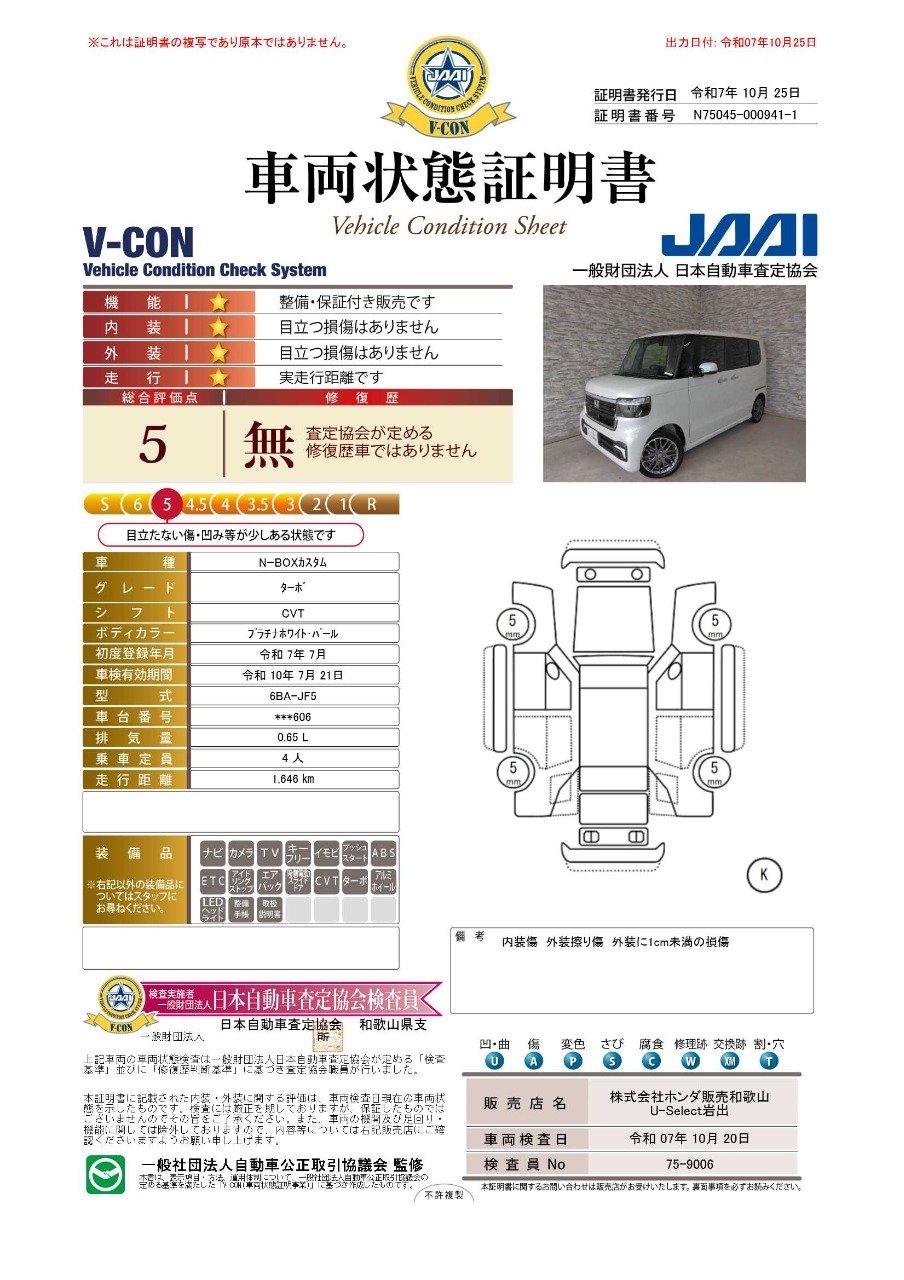 車両保証(N-BOXカスタム ターボ:Honda Cars 紀の川 U-Select 和歌山北インター)