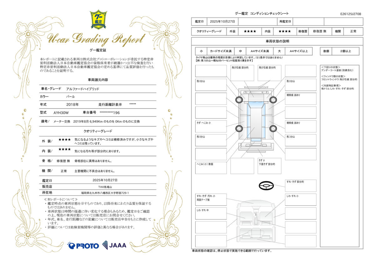 | 機関評価 | 正常 | 修復歴 | 無 |