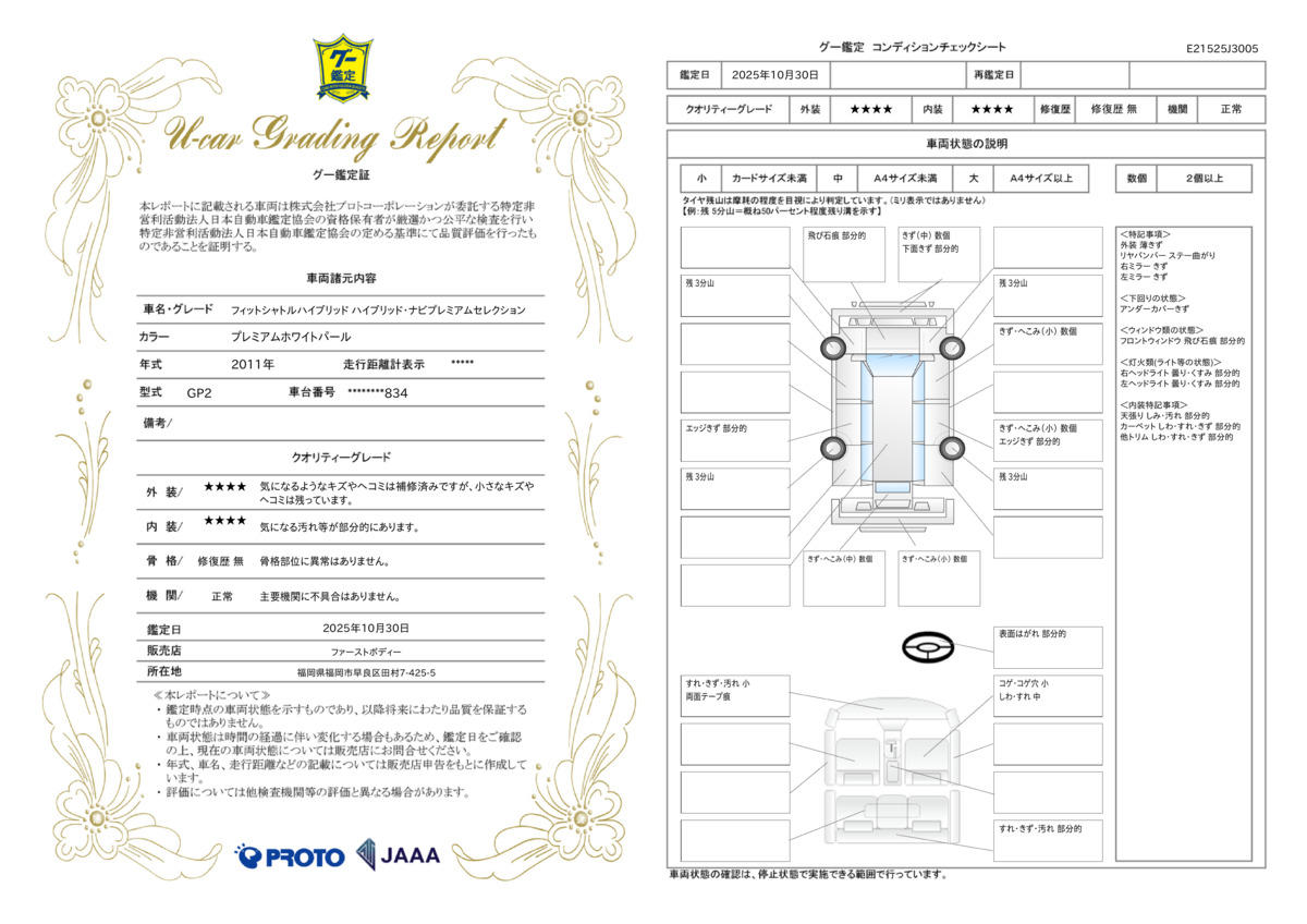 | 車両状態評価書 | ※クリックすると開きます![]() |
