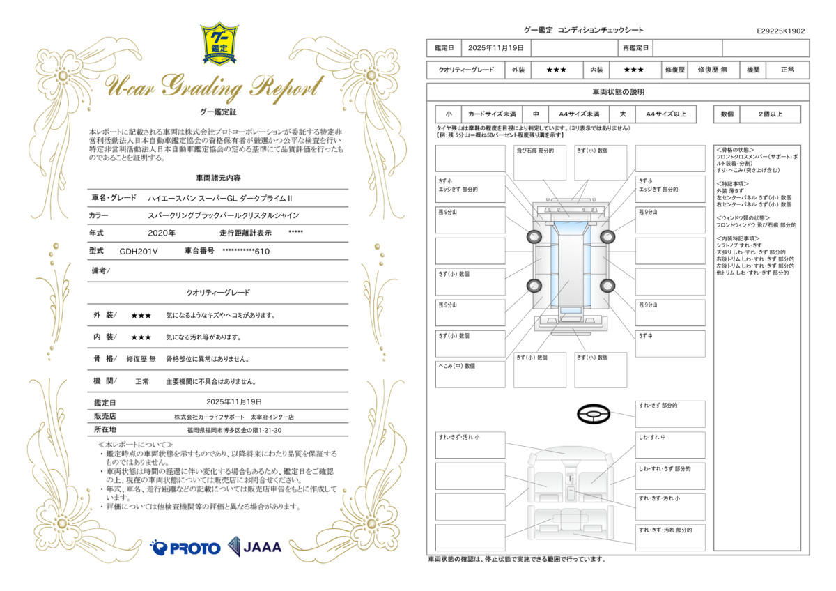 | 車両状態評価書 | ※クリックすると開きます![]() |