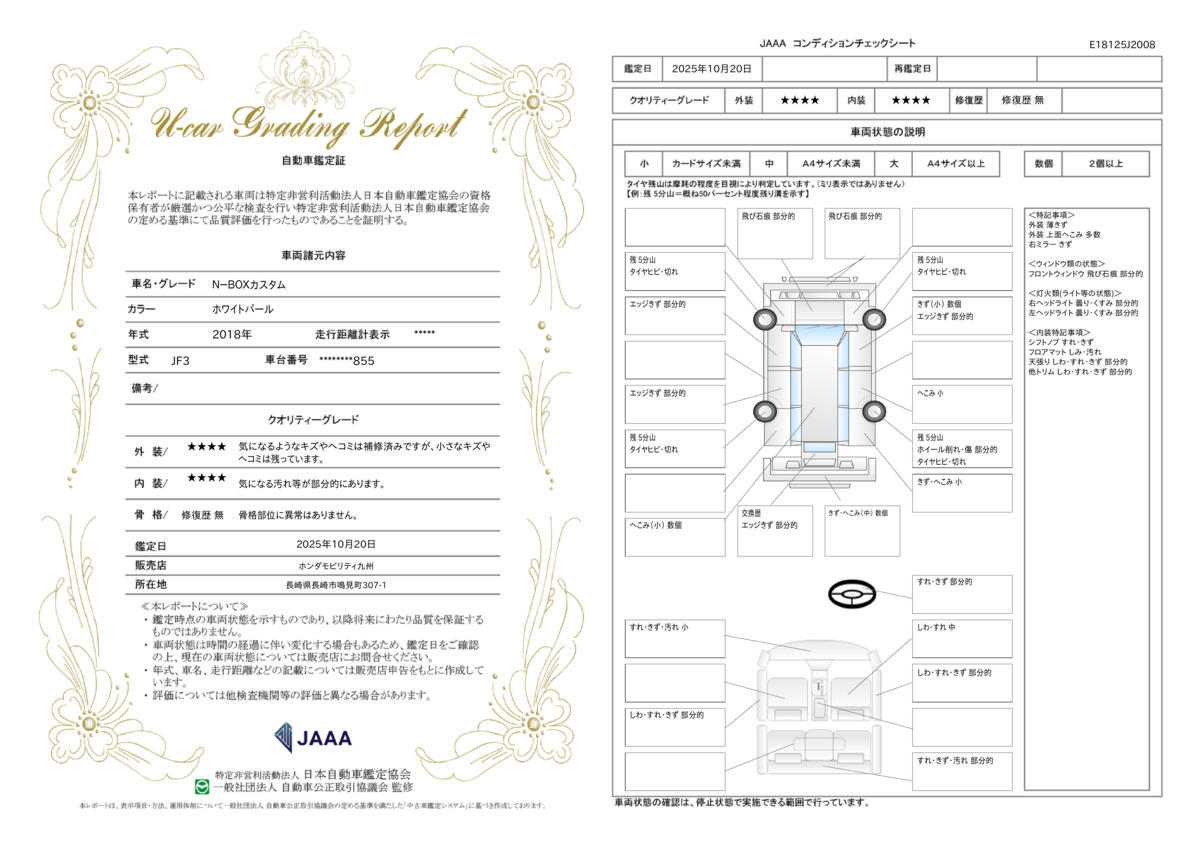 | 車両状態評価書 | ※クリックすると開きます![]() |