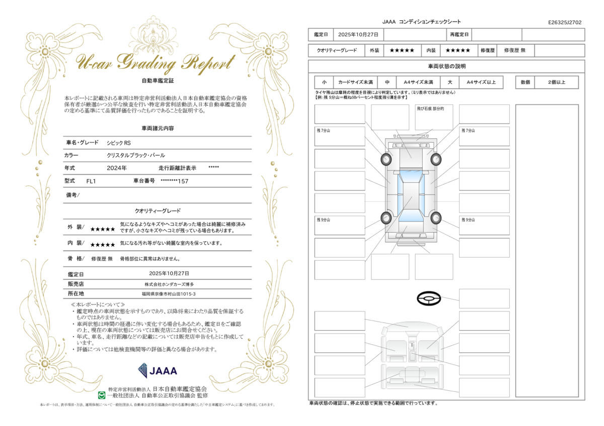 | 車両状態評価書 | ※クリックすると開きます![]() |
