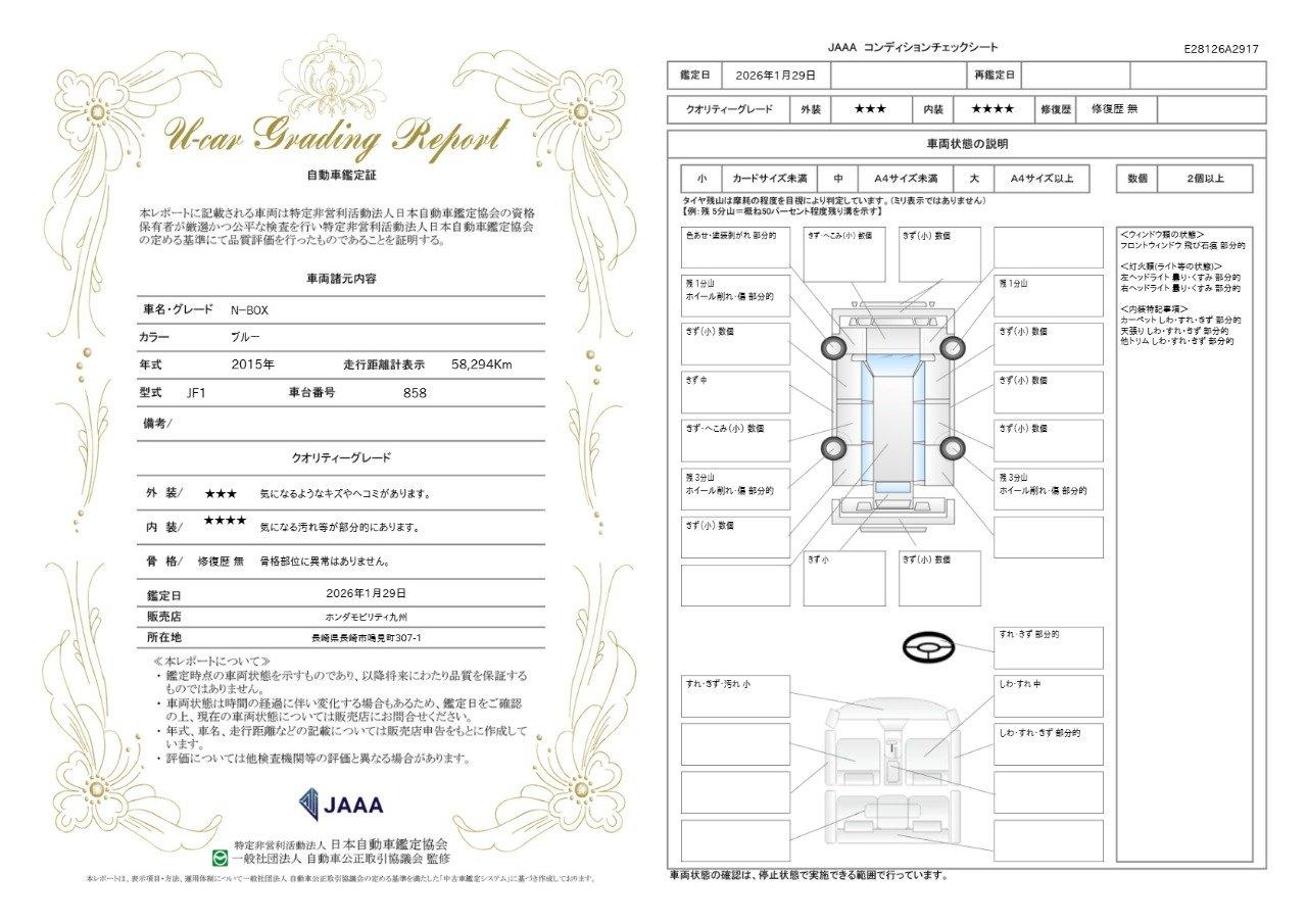 | 車両状態評価書 | ※クリックすると開きます![]() |