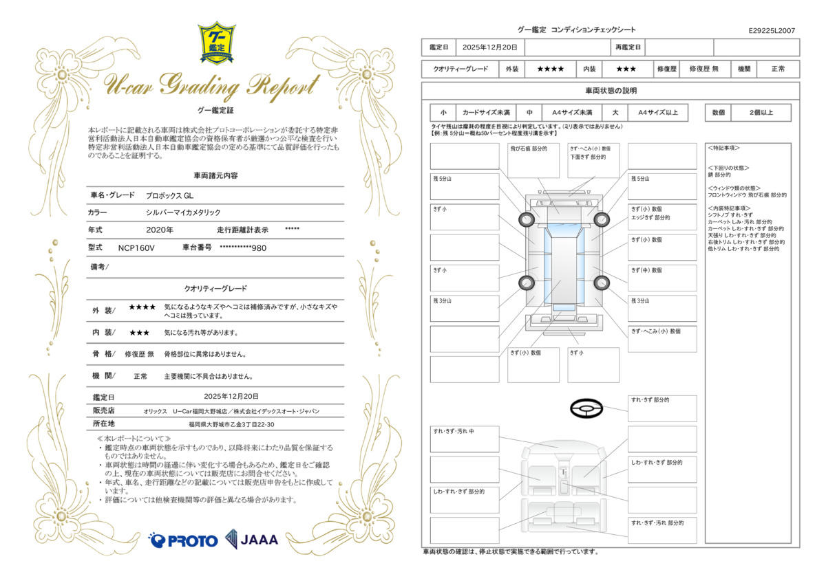 | 車両状態評価書 | ※クリックすると開きます![]() |