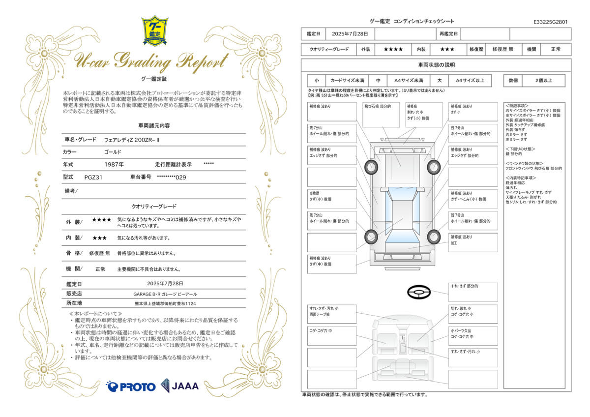 | 車両状態評価書 | ※クリックすると開きます![]() |