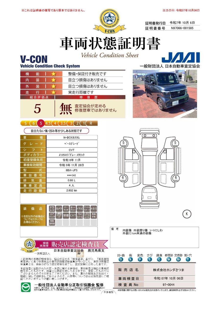 車両保証(N-BOXカスタム ベースグレード:Honda Cars さつま 指宿店 (株)ホンダさつま)