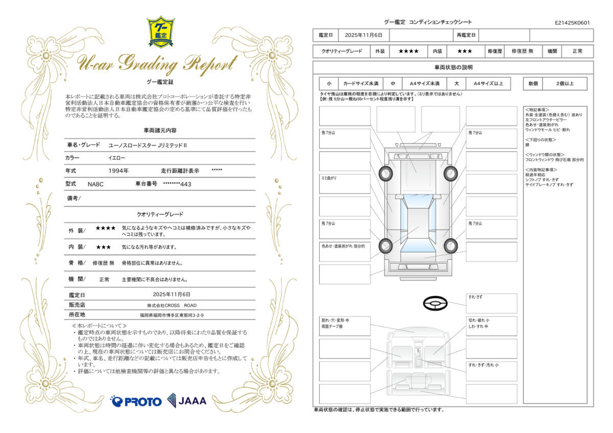 | 車両状態評価書 | ※クリックすると開きます![]() |