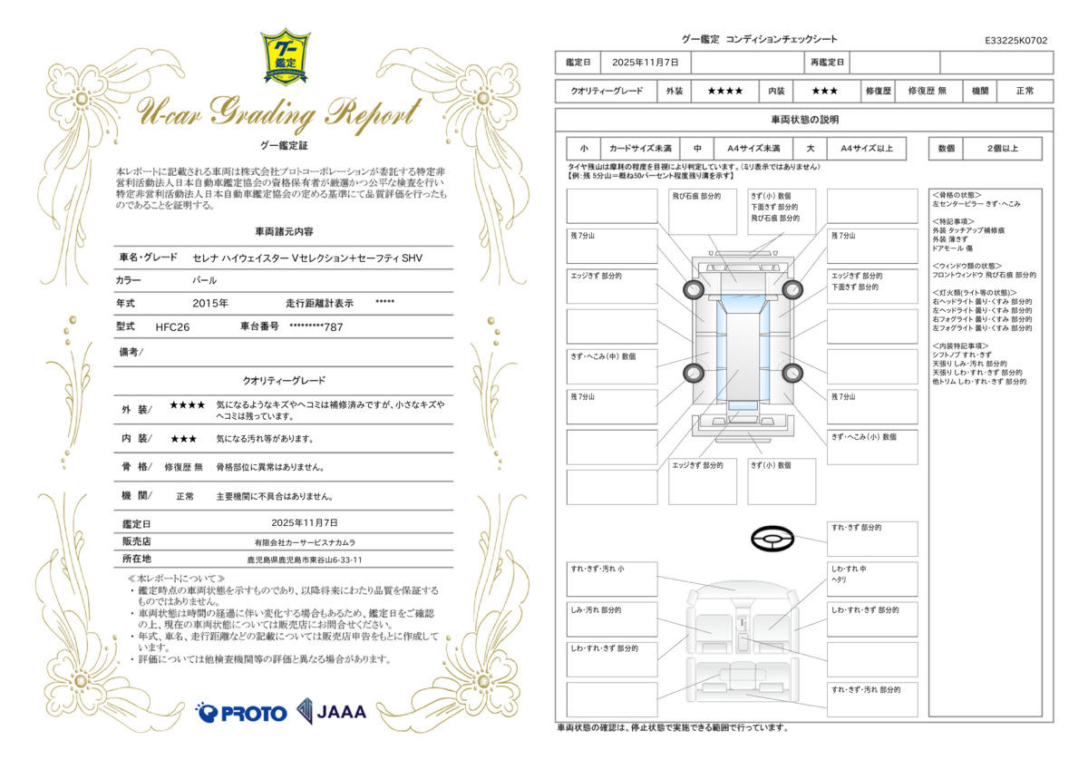 車両状態(セレナ ハイウェイスター Vセレクション+セーフティ SHV)