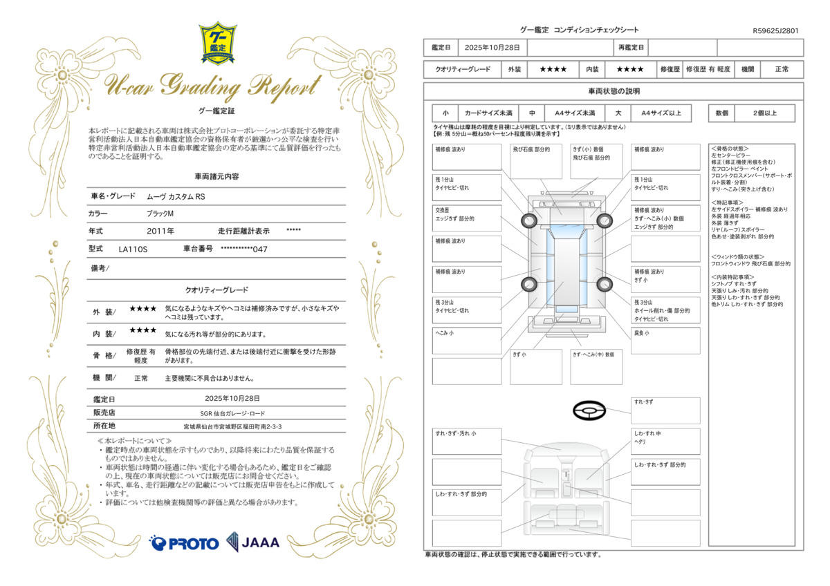 | 車両状態評価書 | ※クリックすると開きます![]() |