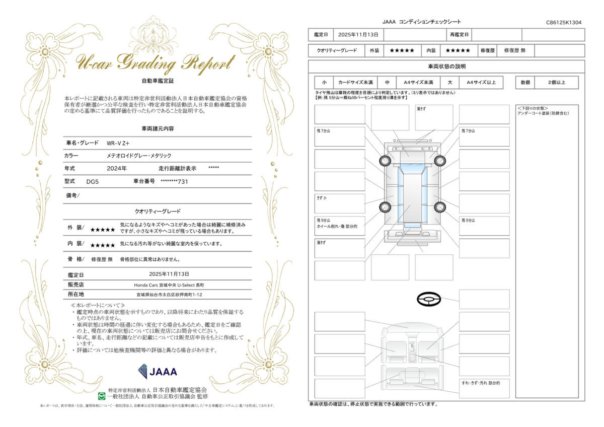 | 車両状態評価書 | ※クリックすると開きます![]() |