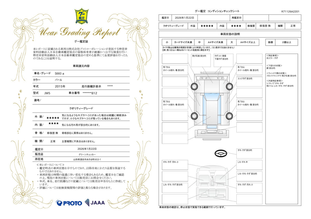 | 車両状態評価書 | ※クリックすると開きます![]() |