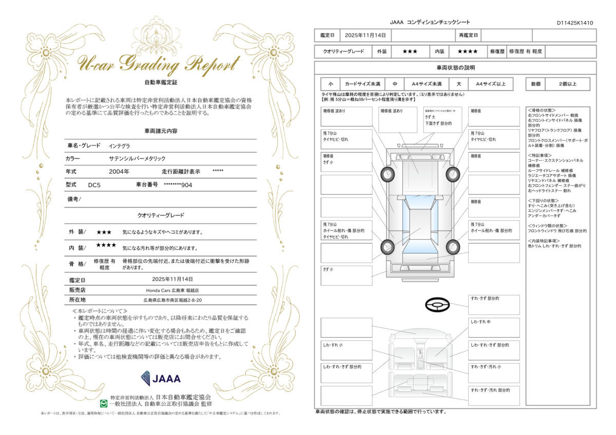 | 車両状態評価書 | ※クリックすると開きます![]() |