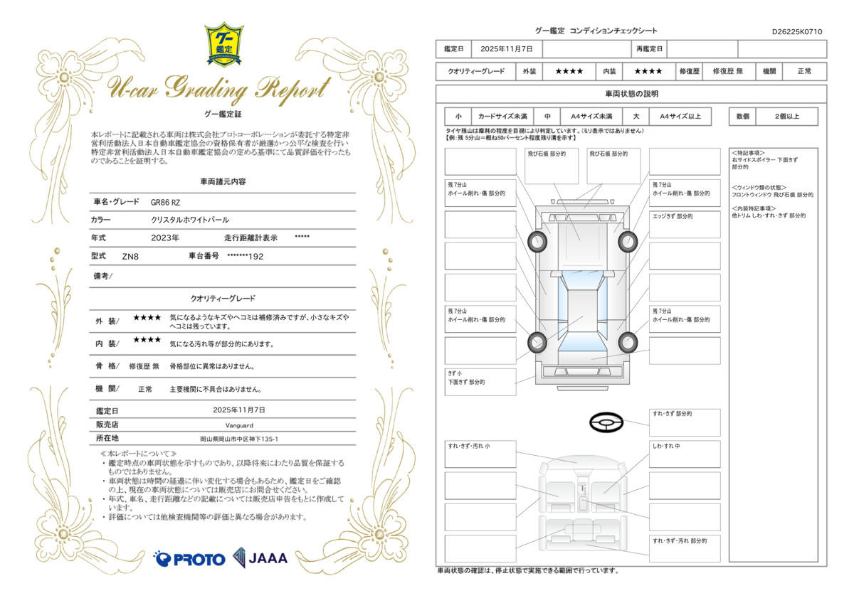 車両保証(GR86 RZ:VANGUARD本店 (株)バンガード JU適正販売店)
