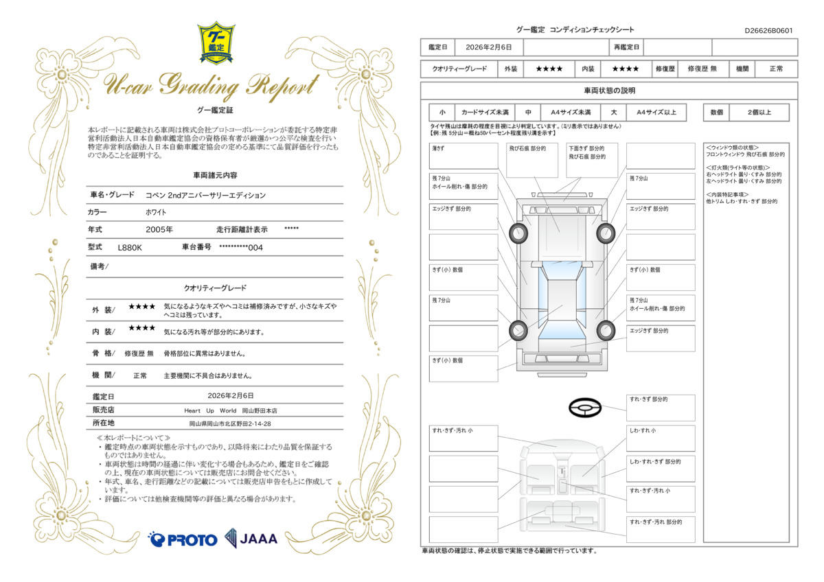 | 車両状態評価書 | ※クリックすると開きます![]() |