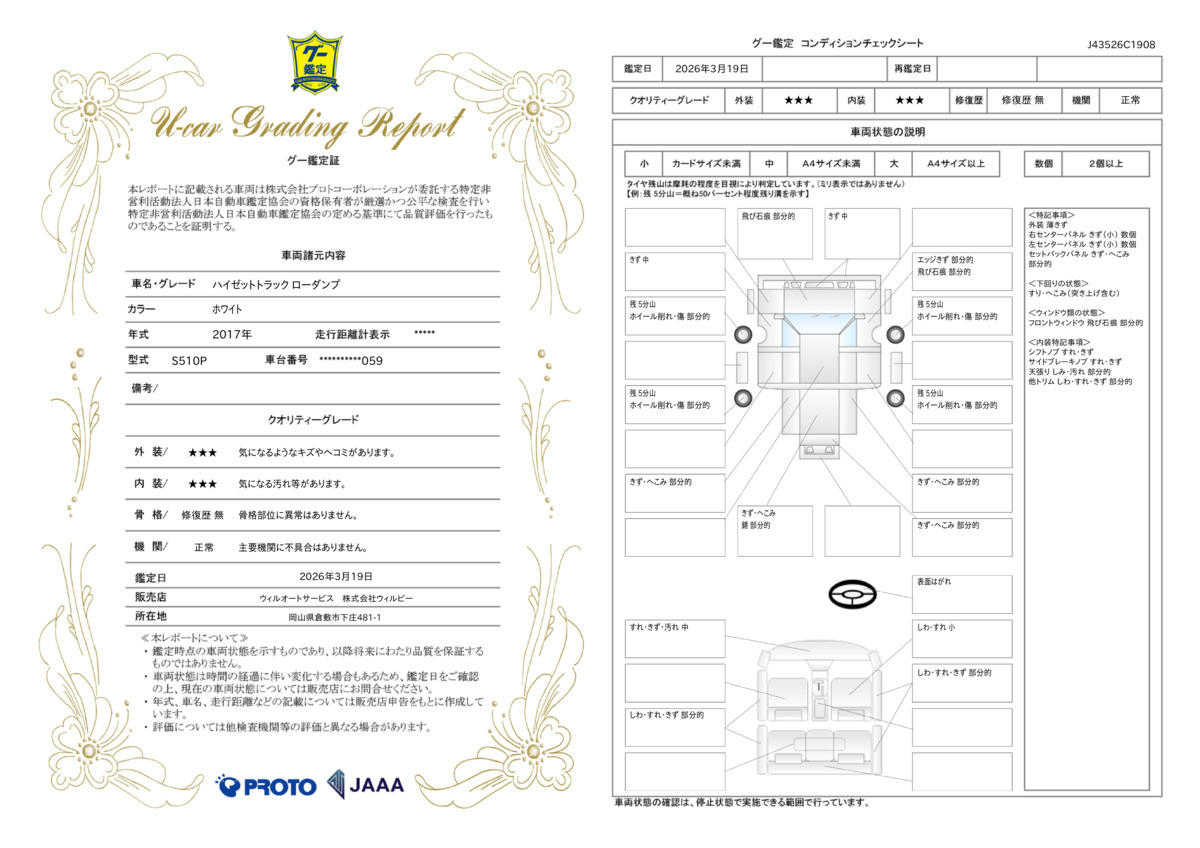 | 車両状態評価書 | ※クリックすると開きます![]() |