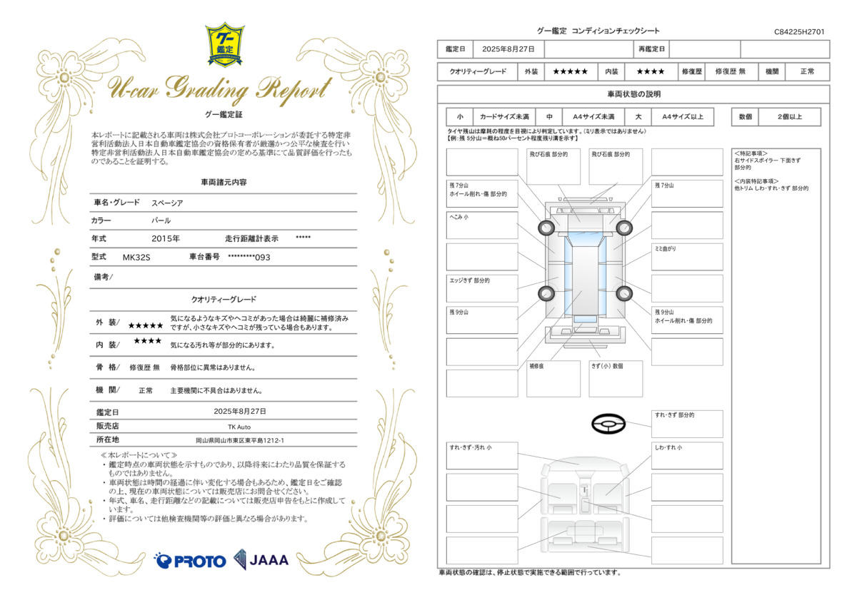 | 車両状態評価書 | ※クリックすると開きます![]() |