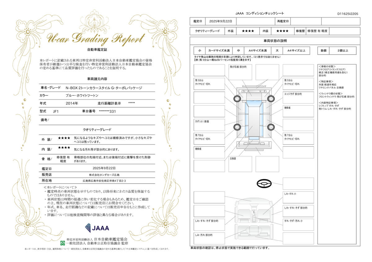 車両状態(N-BOX 2トーンカラースタイル G・ターボLパッケージ)