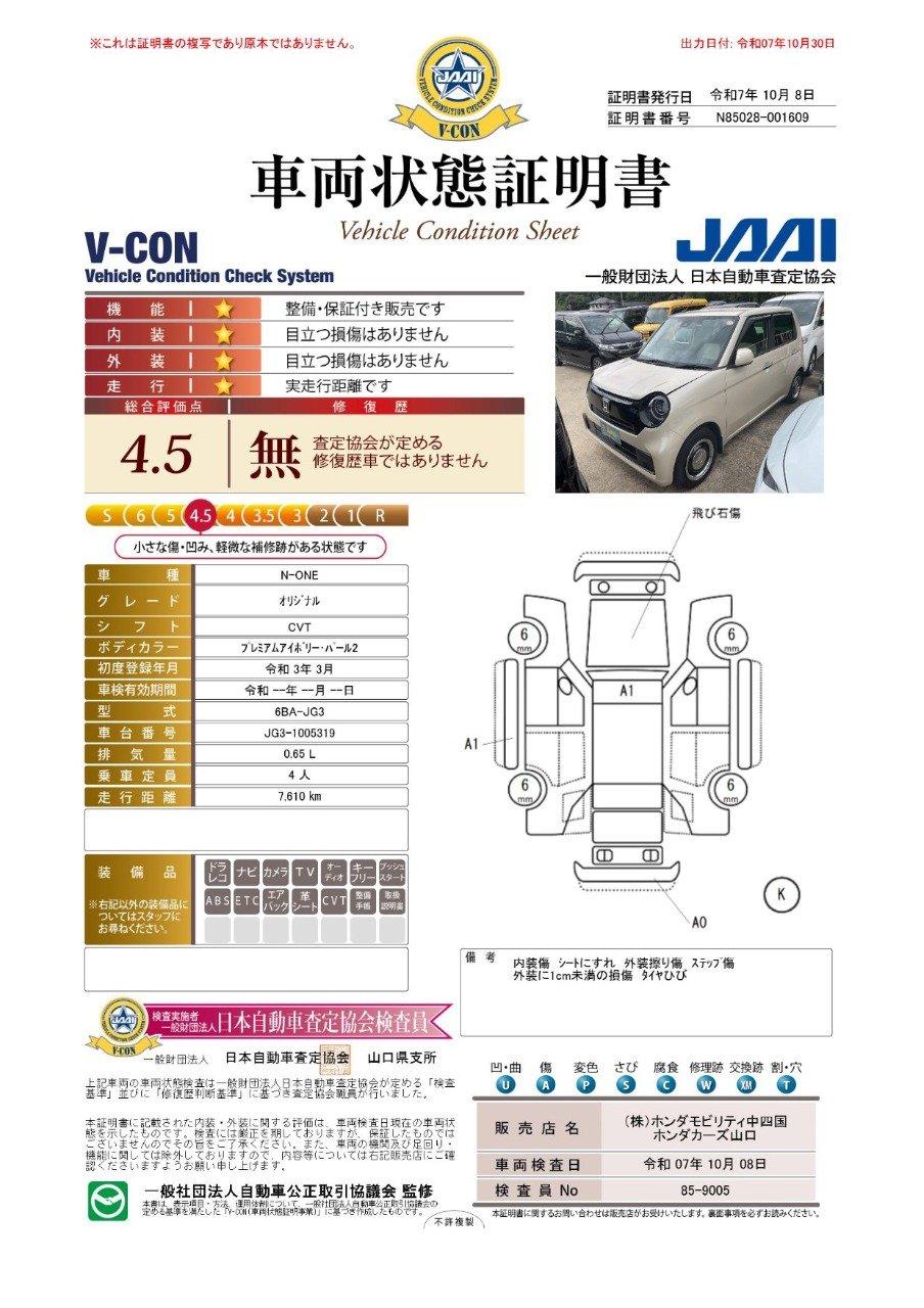 車両保証(N-ONE オリジナル:Honda Cars 山口 防府西店(認定中古車取扱店))