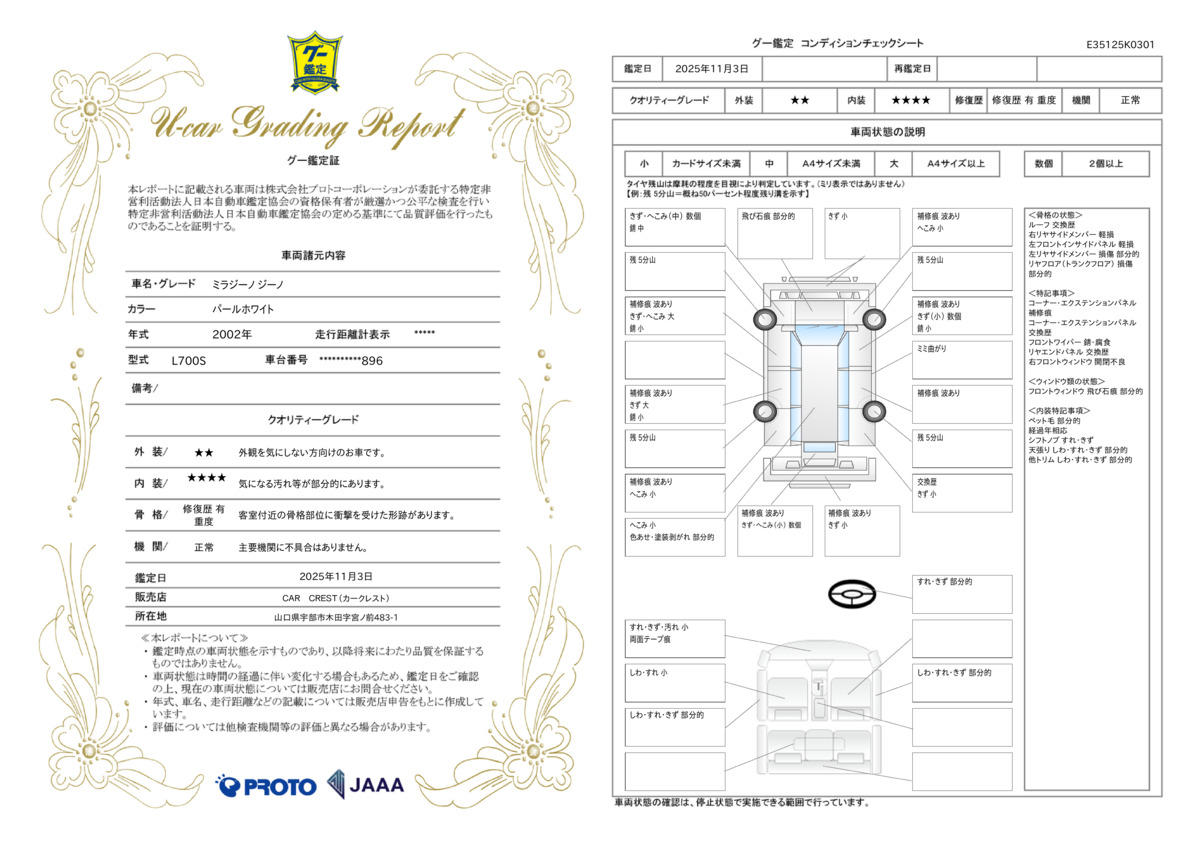 | 車両状態評価書 | ※クリックすると開きます![]() |