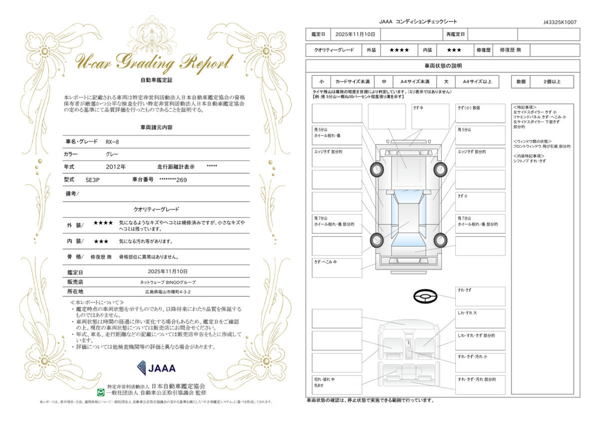 | 車両状態評価書 | ※クリックすると開きます![]() |
